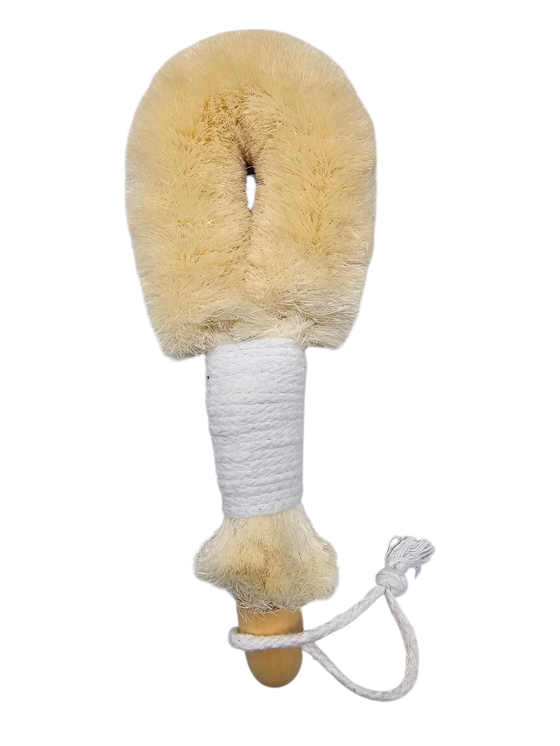 Description: Our all-natural brush is made from sisal fiber, which is derived from the leaves of the Agave sisalana plant. This fiber is known for its stiff and coarse texture, making it ideal for exfoliation and stimulating circulation. It can also lift ingrown hairs, reduce cellulite, and slough off dead skin.
